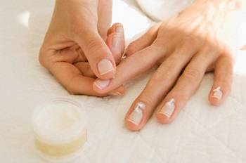 Массажными движениями аккуратно втирают средство в область ногтевой пластины, кутикулы, подушечек пальцев. Массаж быстро дает нужные результаты, особенно если выполнять его перед сном, а затем надевать на ночь хлопковые перчатки.