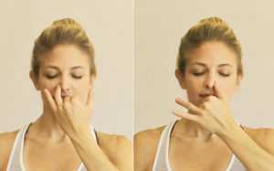 - Положите средние пальцы на углубления в ноздрях, а большие поместите вовнутрь.