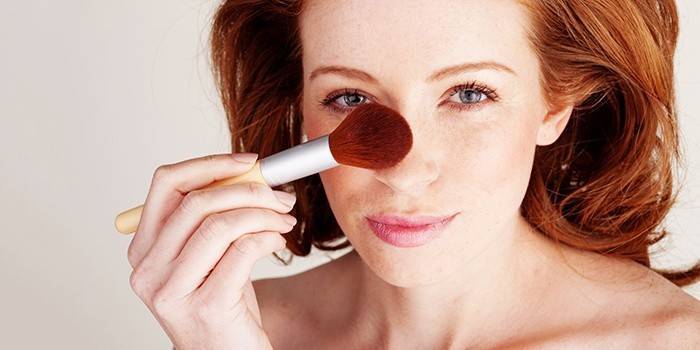 Иногда обычные румяна могут послужить прекрасной заменой тональному крему. Наносить их нужно точно так же, как и крем, но не спонжем, а кисточкой. Нельзя пытаться скорректировать форму при помощи румян розового цвета. Лучше применять бронзовую или оранжевую цветовую гамму.