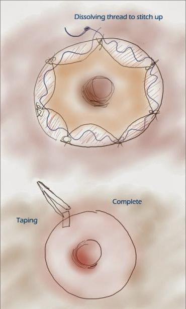 - Суть операции в том, чтобы отделить полоску кожи нужного размера по всей окружности ореолы.