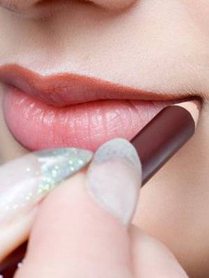 - Приступаем к прорисовке нового контура: возьмите карандаш понравившегося вам оттенка, но не очень светлого, подведите им губки, немного выходя за контур, «птичке» на верхней губке задайте плавные очертания. Постарайтесь не выходить за ваш природный контур слишком сильно, чтобы не получить неестественный и даже нелепо выглядящий результат.
