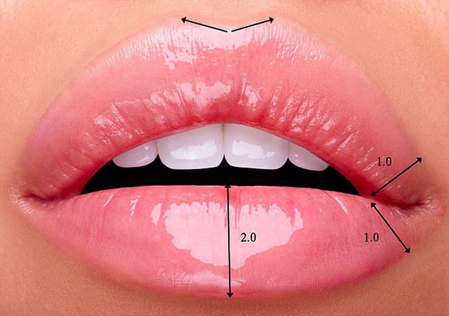 Зрительная величина объёма зависит от расстояния, оставленного между вершинами верхней губы. Чем шире, тем пышнее губы.