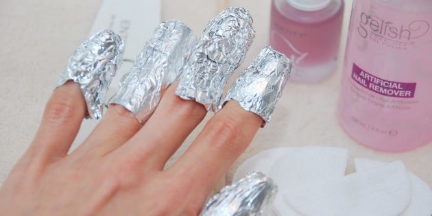 Эти материалы нужны, чтобы обеспечить длительное воздействие жидкости на покрытие: пропитанные диски кладут на ногти, затем оборачивают фольгой.