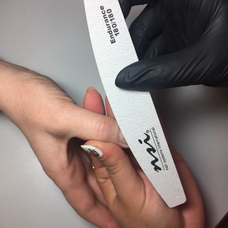 - Следующий шаг — полировка бафом. Обычно для полировки используют 4-х сторонние бафы. Ноготь полируется постепенно каждой стороной, до образования гладкой поверхности.