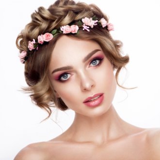 Свободные пряди вокруг лица – это очень важная деталь, обратите внимание стилиста на это. Подойдут завитые пряди, собранные кверху. «Небрежные» прически с боковыми начесами