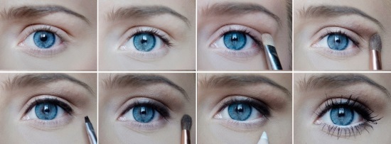 Лучший «увеличивающий» макияж для глаз — это светло-серые тени на верхнем веке, серебристые на нижнем, серая тушь на ресницах. Не подойдет такой мейк только кареглазым. Они могут сделать подобный макияж в коричневых тонах;