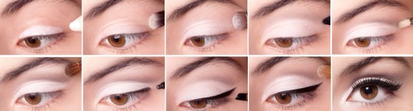 - По складке подвижного века аппликатором проводится небольшая, еле заметная линия. Рекомендуемые оттенки: тёмно-серый, бежевый, коричневый и другие приближённые к натуральности тона.