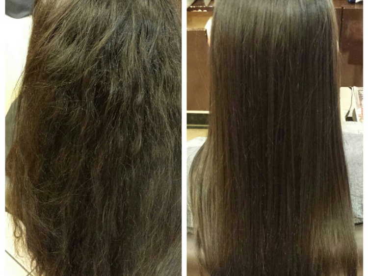 Компоненты заполняют промежутки повреждённых волос, а горячие приборы запаивают их внутри.