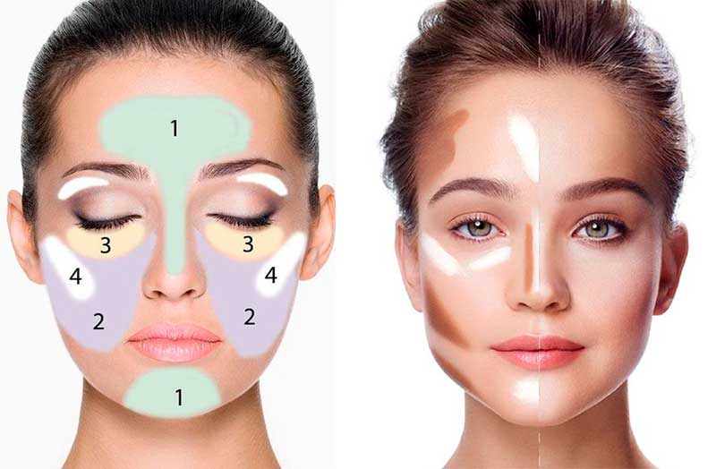 При скульптурировании визажисты придерживаются схем, с помощью которых делают лицо более объемным, подтянутым. Игра света и тени позволяет визуально изменить черты лица.