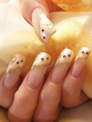 - Маникюр сочетается не только с платьем или букетом, но и с украшениями. Чтобы сэкономить, можно использовать имитацию золота, серебра и т.п.