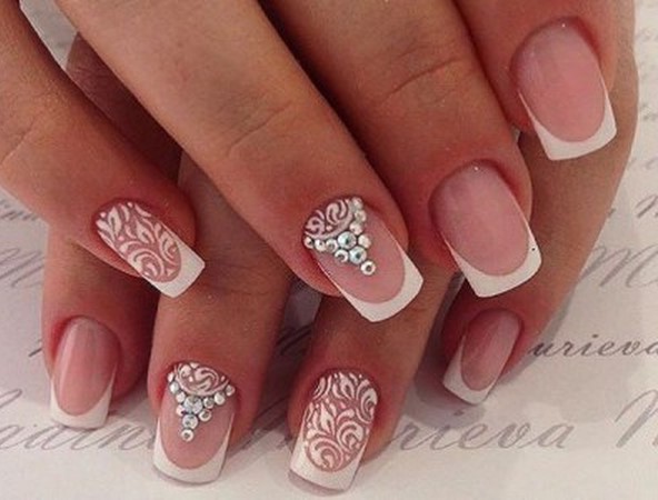 Интересный вариант свадебного френча со стразами