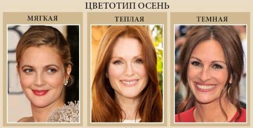 Так, например, «мягкой осенью» считается модель Кейт Мосс, а «глубокой осенью» – актриса Джулия Робертс.