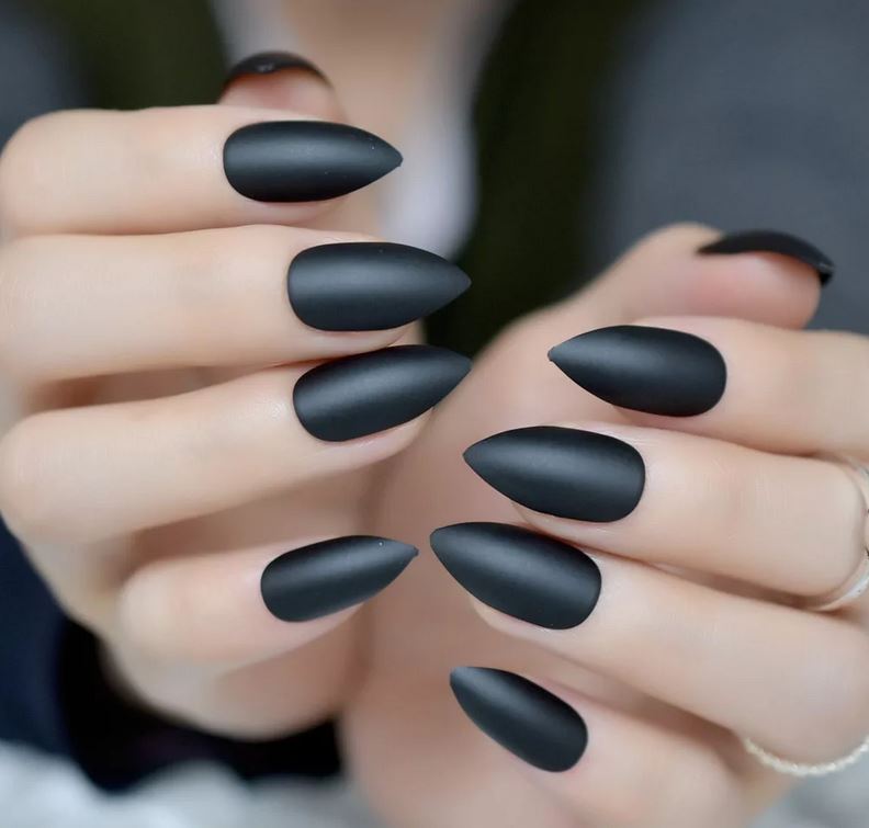 Красиво заострить можно только длинные ногтевые пластины. Острые ноготки средней длины – неудачный вариант. Наращенные ногти острые – это холст для мастера нейл-дизайна. На них можно создавать целые композиции. Модный вариант на повседневную носку – матовый маникюр. Цвет в этом случае может быть любой. В 2019 году популярен черный колор.