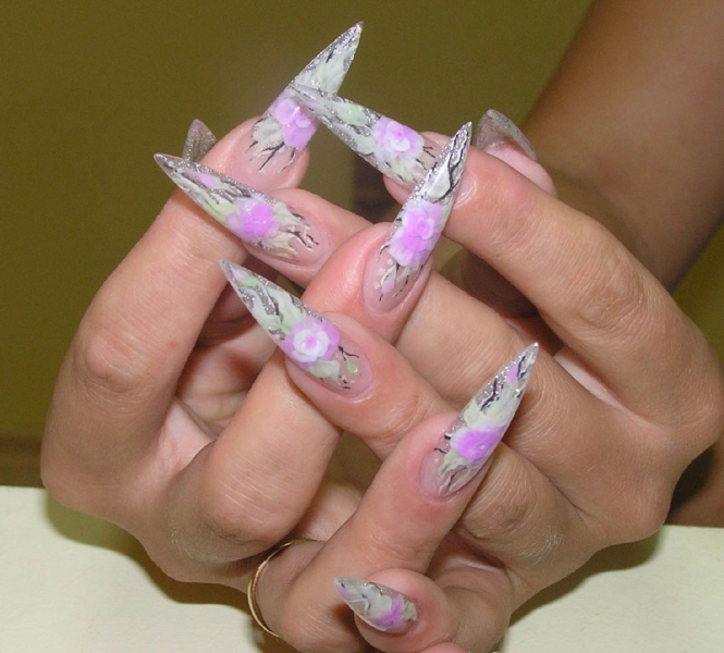 Стилеты – это сильно заостренные ногти. Такое оформление реально выполнить только на наращенных ногтевых пластинах. Смотрятся стилеты броско, сексуально, но они не практичны.