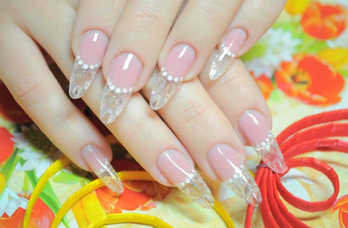 Прозрачные ногтевые пластины делаются с помощью наращивания гелем. Смотрятся такие ногти просто, но в то же время необычно, стильно. Обычно полностью прозрачными ногти не делаются. Тело ногтя покрывается колором, близким к натуральному, или с блестками. Свободный край остается прозрачным, либо на него наносится голографическая втирка, блестки или легкие мазки светлого лака, рисунки. Наращивание ногтей фотки с прозрачным дизайном выглядят привлекательно. Такой вариант подходит для девушек, которые хотят выделиться.