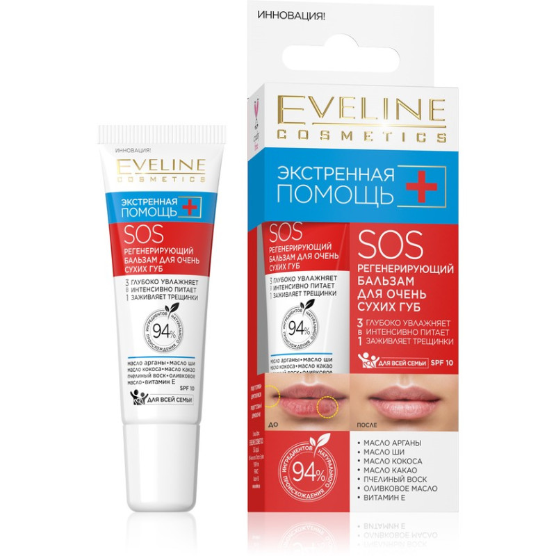 Бальзам для губ EVELINE SOS для очень сухих губ SPF-10 СМОТРЕТЬ ЕЩЁ