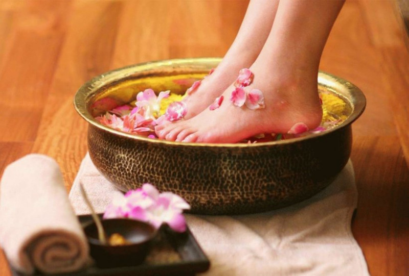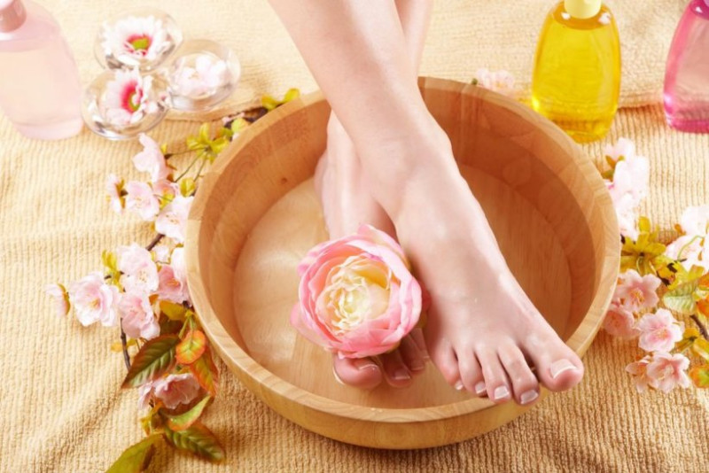 - Перед тем, как погрузить ноги в солевой раствор по щиколотку, их нужно хорошо вымыть.
