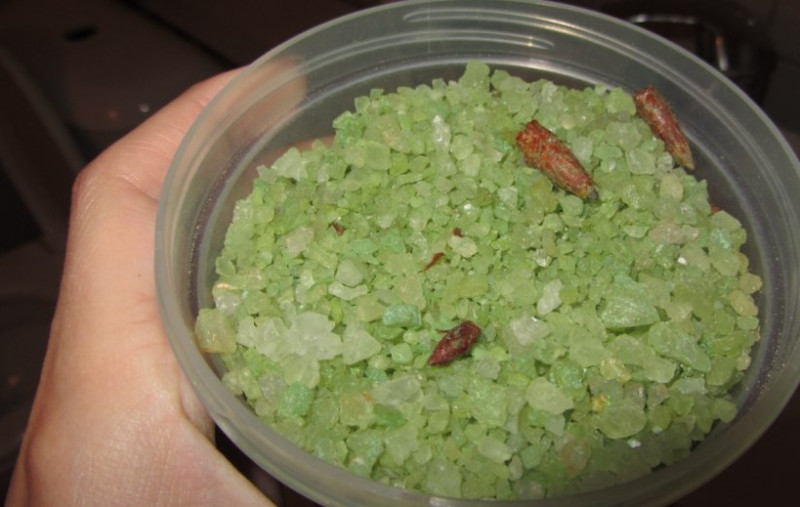 Делать рабочий состав очень просто. На литр горячей воды берется две-три чайных ложки соли с горкой. Не нужно использовать «Экстру»: она слишком мелкая, и концентрация получится намного выше необходимой. «Рассол» нужно использовать при температуре 35-40° по Цельсию. Время экспозиции – от 25 минут до получаса. Заметим, что на ногах при использовании этого средства не должно быть ран, язв, царапин и прочих повреждений, не говоря уже об экземах и дерматитах. Соль вызовет сильную боль и раздражение, воспалительные явления могут усилиться. А потому перед процедурой рекомендуется сперва залечить все ранки.