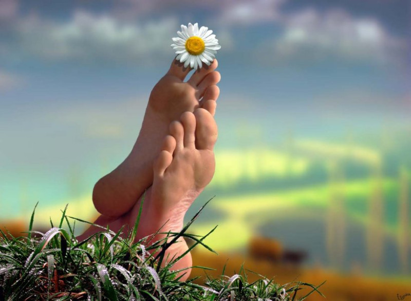 С уставших, отекших ног нужно снять обувь, носки, обеспечить к ним беспрепятственный доступ воздуха. В течение четверти часа делать массаж, включающий растирания, разминания, поглаживания, сгибания и разгибания стоп. Затем следует спокойно отдохнуть, полежать, положив ступни на валик. Заканчивается процедура обмыванием ног прохладной водой, нанесением увлажняющего крема.