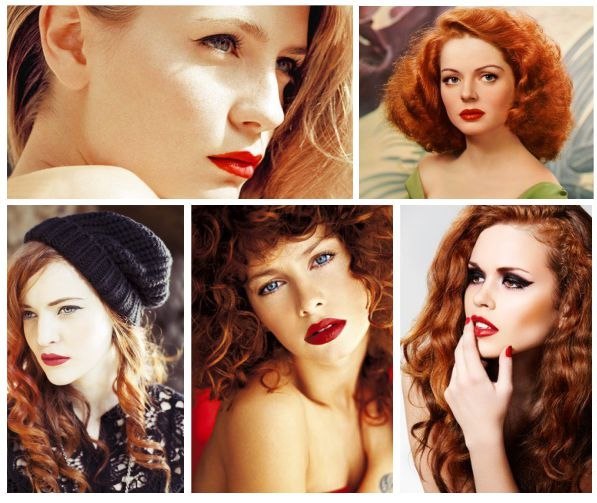 В первую очередь «девушке-осени» стоит отдать предпочтение оттенкам, которые будут перекликаться с ее цветом волос – это медные, оранжевые и оранжево-красные тона. Яркости также добавит коралловая помада.