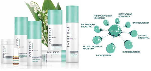 Mirra. Российская компания Mirra начинала свой путь развития с успокаивающего бальзама Мирралгин, а сегодня производит как уходовую, так и декоративную косметику. Немаловажным фактом является то, что разработка продукции компании Mirra связана с деятельностью Государственного научного центра прикладной микробиологии. Среди представленного ассортимента кремов для лица можно выделить одно необычное средство – крем Мегаполис. Он нацелен на защиту кожи в условиях агрессивной среды большого города. Помимо привычной защиты от ультрафиолетовых лучей, продукт защищает кожу от табачного дыма и даже от электромагнитных излучений.