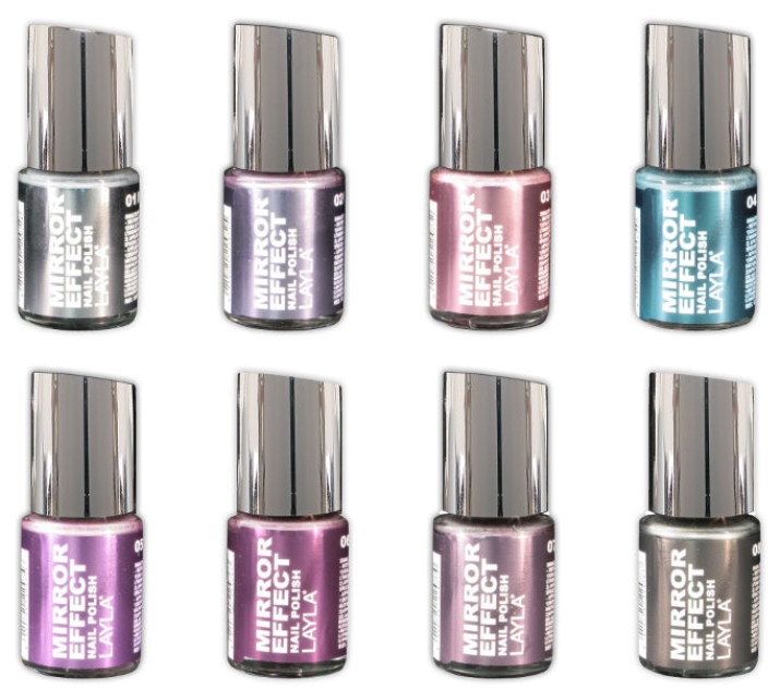 | Layla (линейка Mirror Effect Nail Polish) | 600-800 рублей | Настоящее зеркальное покрытие на ногтях можно найти у производителя лаков под названием Layla. |