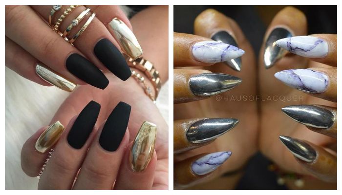 Глянцевые и матовые текстуры выглядят просто превосходно и выделяют обладательницей лака с хромовым зеркальным эффектом среди остальных. Самыми актуальными и популярными оттенками являются: