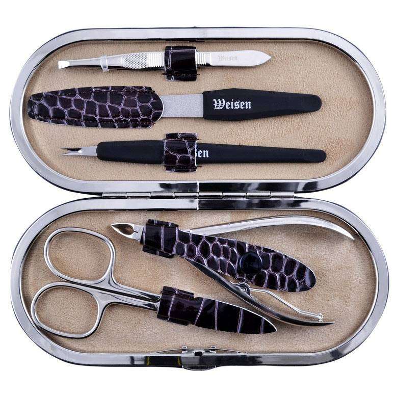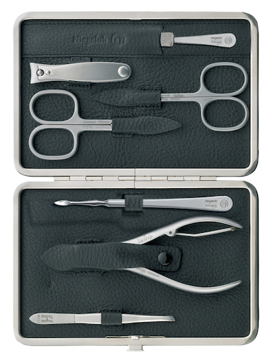 Классические наборы позволяют самостоятельно вручную обрабатывать кожу рук, ногти. В большинстве случаев они облачены в кейс или футляр. В классический маникюрный набор входят: кусачки или щипчики, ножницы с прямыми концами, с тонкими и закругленными, книпсер, пилочка, шабер, пинцет, триммер.