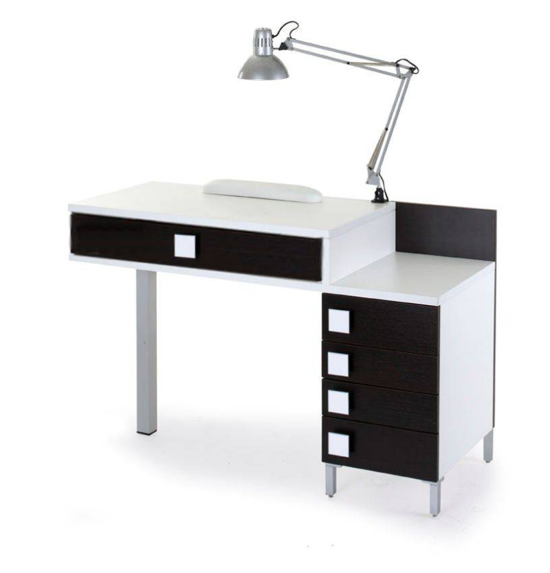 Поэтому важно выбрать эргономичный и вместительный вариант, чтобы было удобно не только мастеру, но и клиенту. На самом столе, как правило, находится лампа для сушки ногтей, валик для рук, одноразовые салфетки и аппарат для обработки кутикулы
