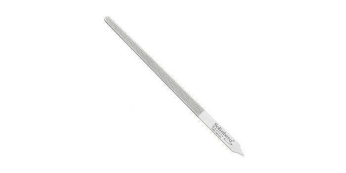 Пятое место занимает инструмент марки Qvs. Это пилочка, выполненная из металла с алмазным напылением. Благодаря этому есть возможность работать как с натуральными ногтями, так и искусственными. У прибора достаточно высокая прочность, за счет этого длительный срок эксплуатации и повышенная износостойкость. Сырьем служит закаленная сталь, что делает изделие качественным.