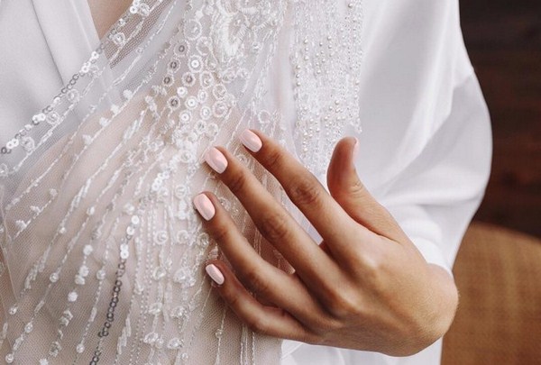 Для создания лаконичного, нежного образа невесты, можно сделать маникюр, выбрав для него пастельные цвета лака в тон букета. Это могут быть белые, нежно-розовые, голубоватые, бежевые, пудровые оттенки. Если в букете есть соцветия с такими же красками, то подобный декор будет смотреться выигрышно и гармонично.