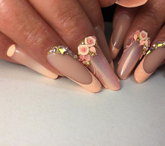 Объемная лепка в маникюре для свадьбы рококо стиля
