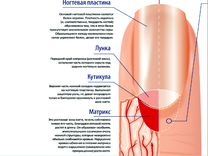 - Ногтевая мантия у основания ногтя перед кутикулой защищает матрикс от физических повреждений.