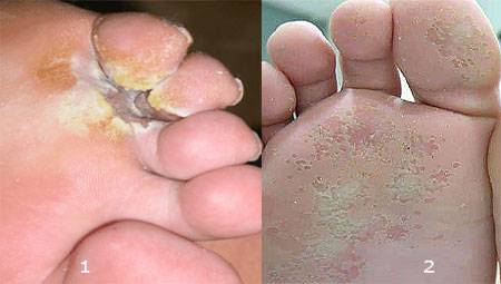 - появление шероховатостей на ступнях и между пальцами;