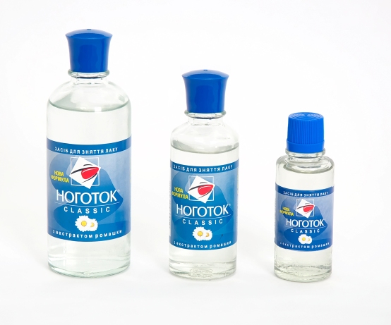 Агрессивно воздействует на синтетику, поэтому годится только для обработки натуральной ткани. Вещество наносится на ватный тампон, которым затем смачивается след от лака. По истечении 15-20 минут одежда отправляется в стирку.