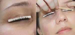 - Через определенный промежуток времени глазные волоски очищают от фиксирующего состава, смазывают их смягчающим маслом.