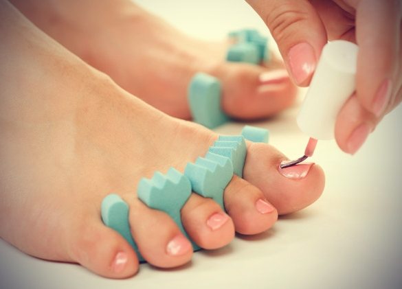 - Синтетические прокладки для пальцев ног. Чтобы наносить лак на ногти было удобно, используйте эти специальные прокладки для того, чтобы пальцы не касались друг друга.
