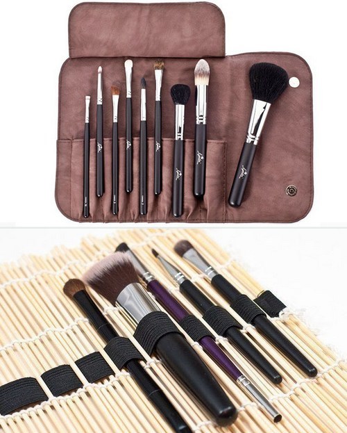 Как ни странно, но для кистей, которые являются косметическими аксессуарами, существуют собственные аксессуары, облегчающие уход и хранение инструментов. Как уже упоминалось, первый необходимый вспомогательный предмет – это чехол или специальный бокс для хранения кисточек. В нем есть большое количество отделений для раздельного расположения каждого инструмента. Чехол по виду напоминает мягкий органайзер для карандашей, который часто используется профессиональными художниками.