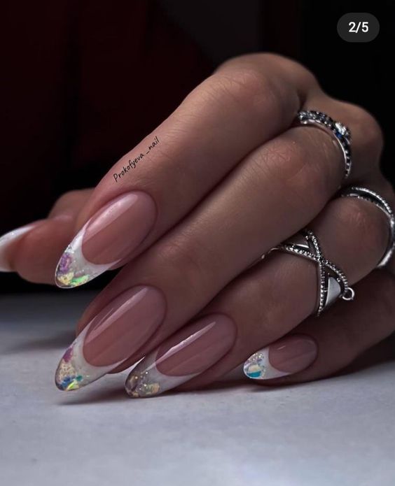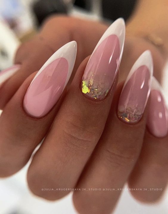 Также вы можете сочетать этот дизайн с блестками или стразами. В моду возвращается леопардовый френч, он подойдет более смелым и ярким девушкам. Более утонченно и нежно будет смотреться союз с цветочными мотивами и бабочками. Также можно попробовать поэкспериментировать с формой — в 2022 году актуален френч на миндальных и острых ногтях.