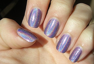 – лак, при нанесении которого на поверхности ногтей создаётся эффект голографии, переливающийся на свету.