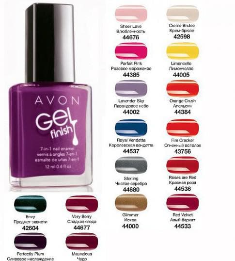 Avon – марка давно известная. В продукции данной компании можно найти и его с гель-эффектом. Коллекция подобных лаков носит название Gel Finish Nail Enamel.