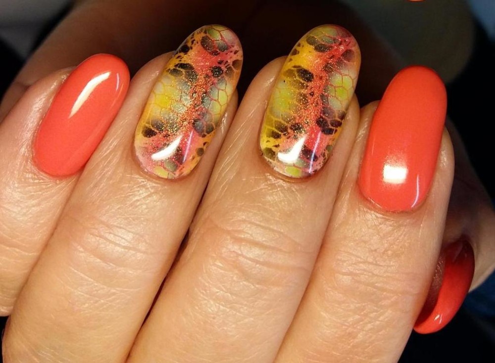 Маникюр, выполненный в аквариумной технике, очень легко поддается коррекции