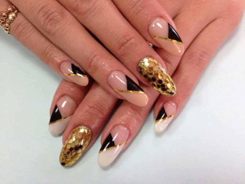 Данный маникюр подойдет девицам, которые выбирают среднюю длину ногтей. Включайте вашу фантазию и творите волшебство с помощью мерцающих блесток! Вы можете использовать крупные блестки (они наносятся на ноготь дотсом) или мелкие (используйте для его нанесения кисть), а также обсыпать разными блестками каждый ноготок.