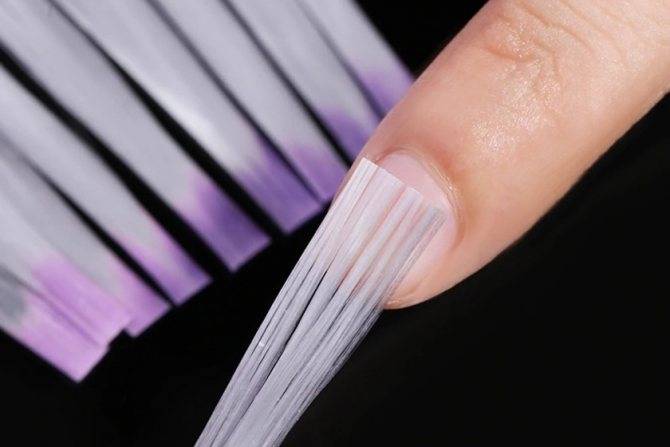 Эти волокна крепятся клеем к ногтевой пластине, предварительно подготовленной по всем правилам.