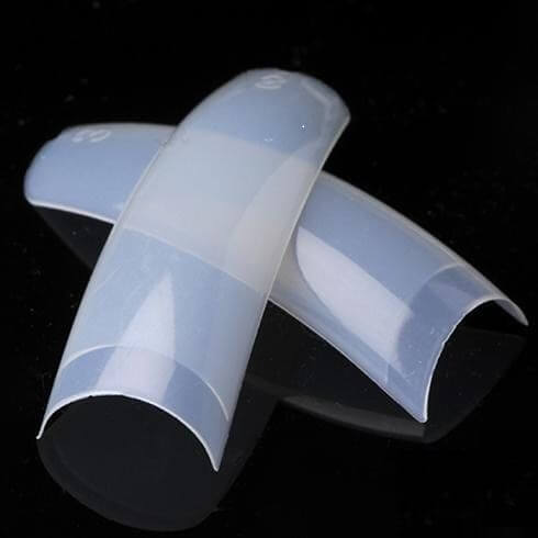 Уже готовые трафареты, матовые или прозрачные. Подбираются по форме и ширине ногтя. Клеятся специальным клеем. После склеивания убирается длина и производится наращивание выбранным материалом поверх типса. Преимуществами работы с типсами является быстрота процедуры наращивания, легкость коррекции формы и структуры пластины.