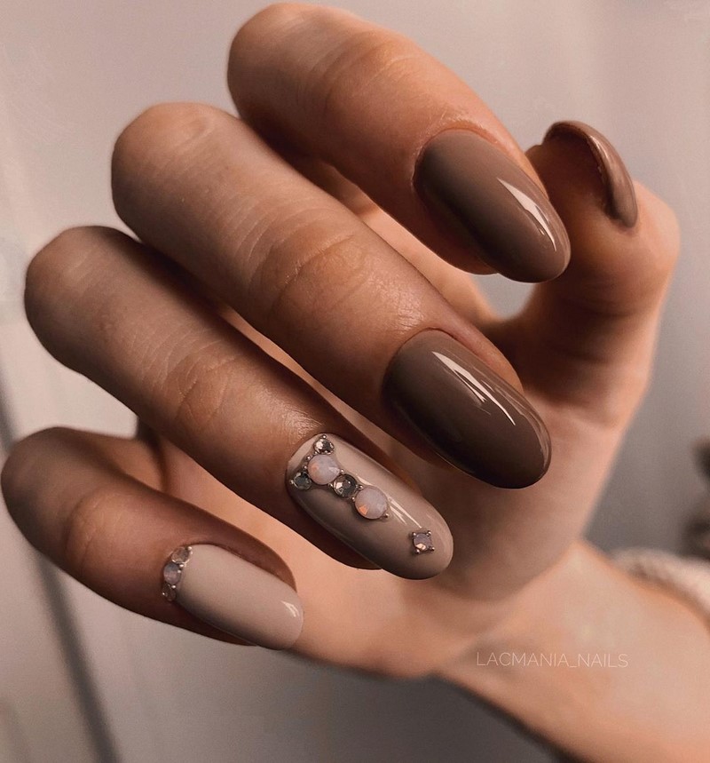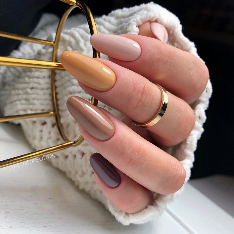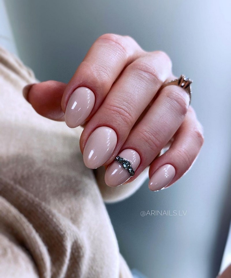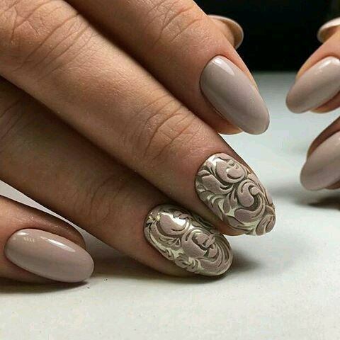 Цвет лака для ногтей можно подобрать в соответствии с цветом платья. Если платье выбрано в бежевом цвете, маникюр должен быть также в бежевых оттенках.