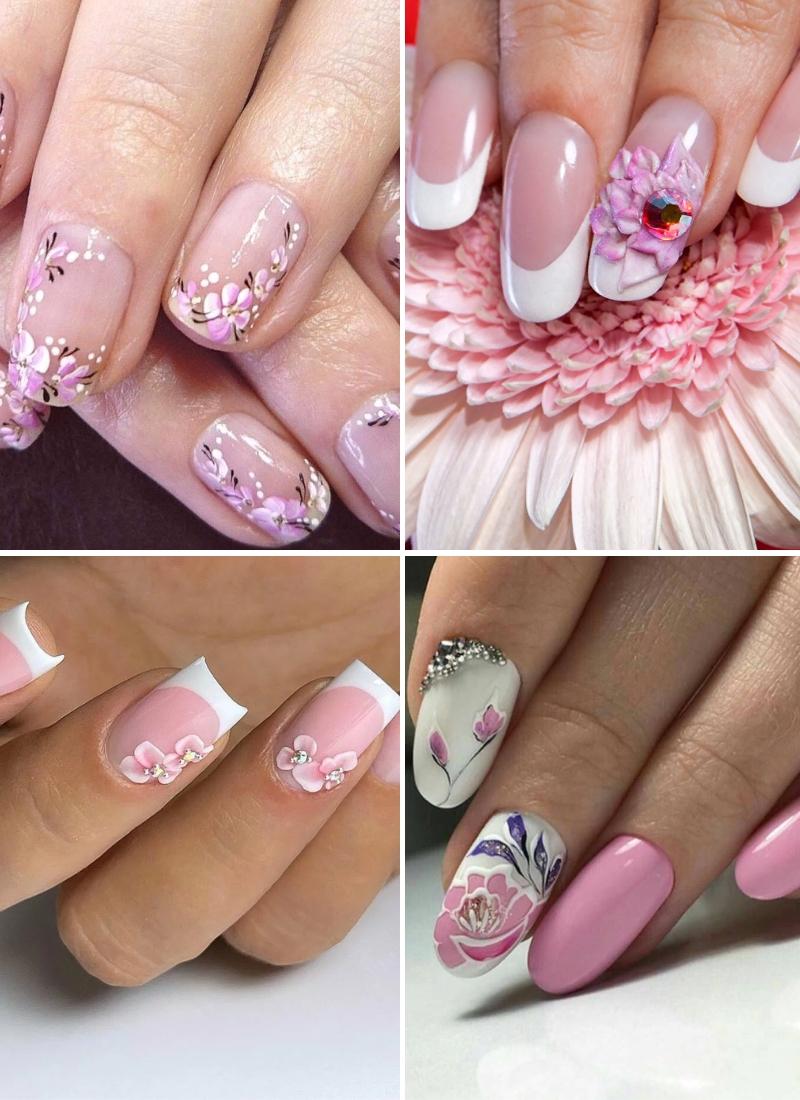 Цветочный маникюр невесты