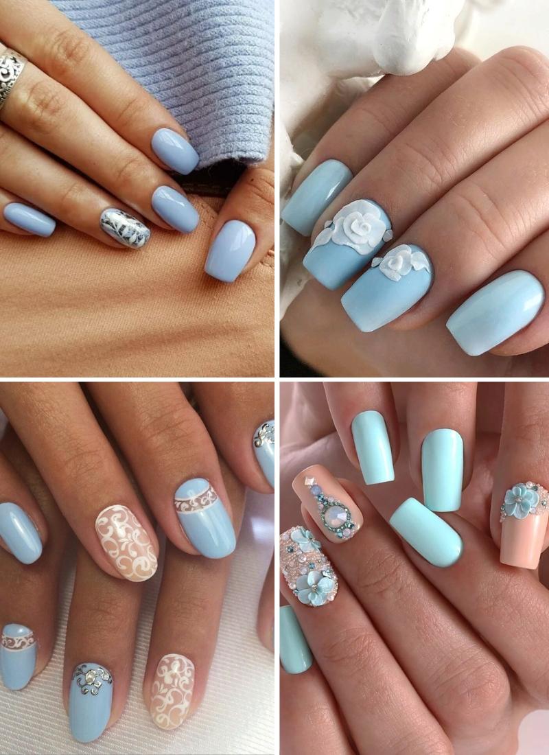 Маникюр невесты в нежно-голубых тонах