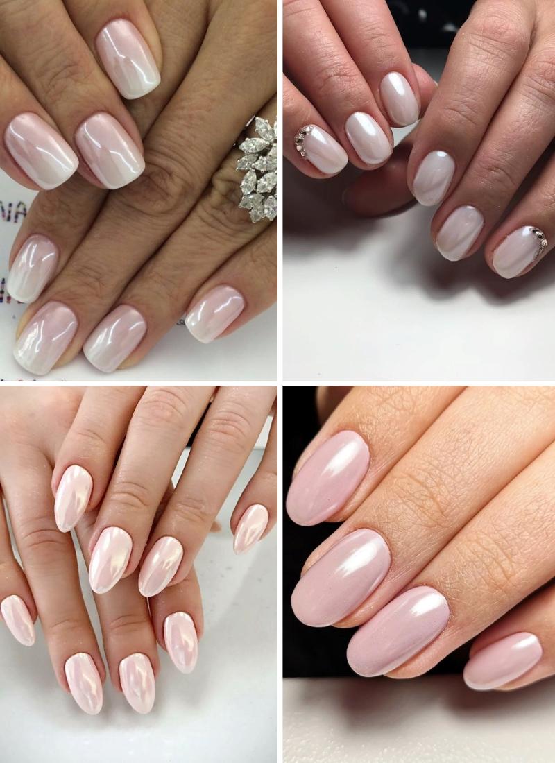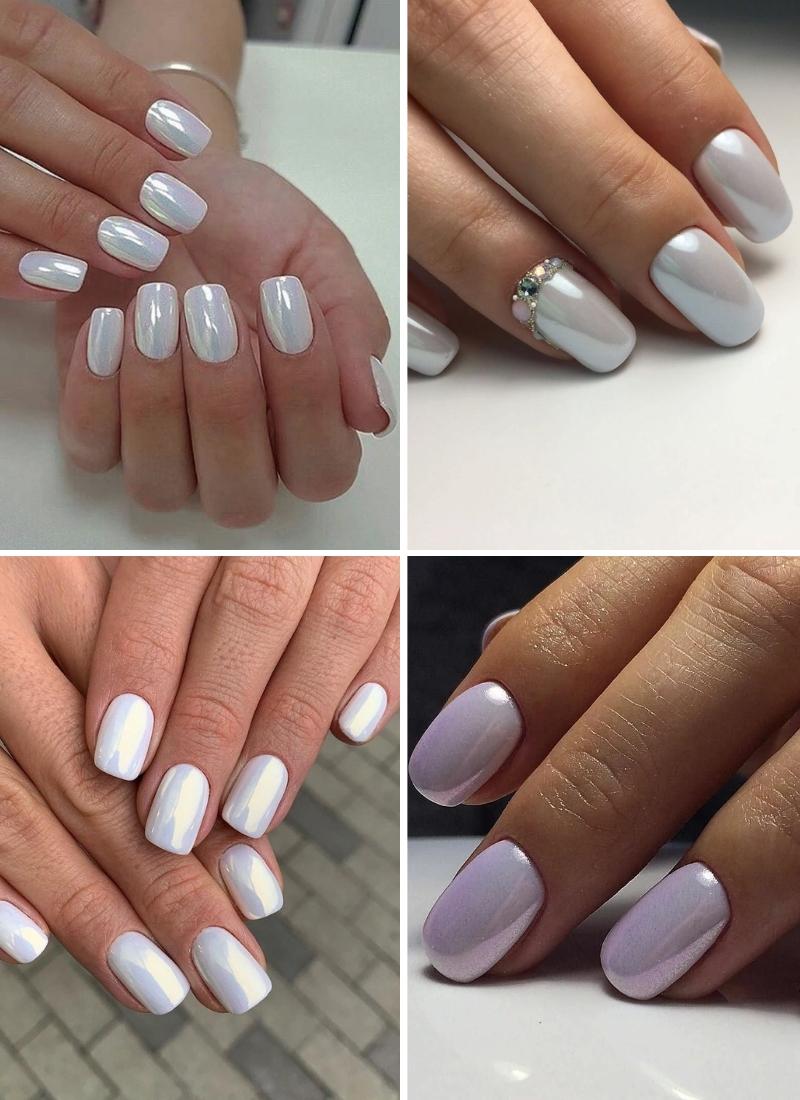 Блестящий перламутровый маникюр для невесты