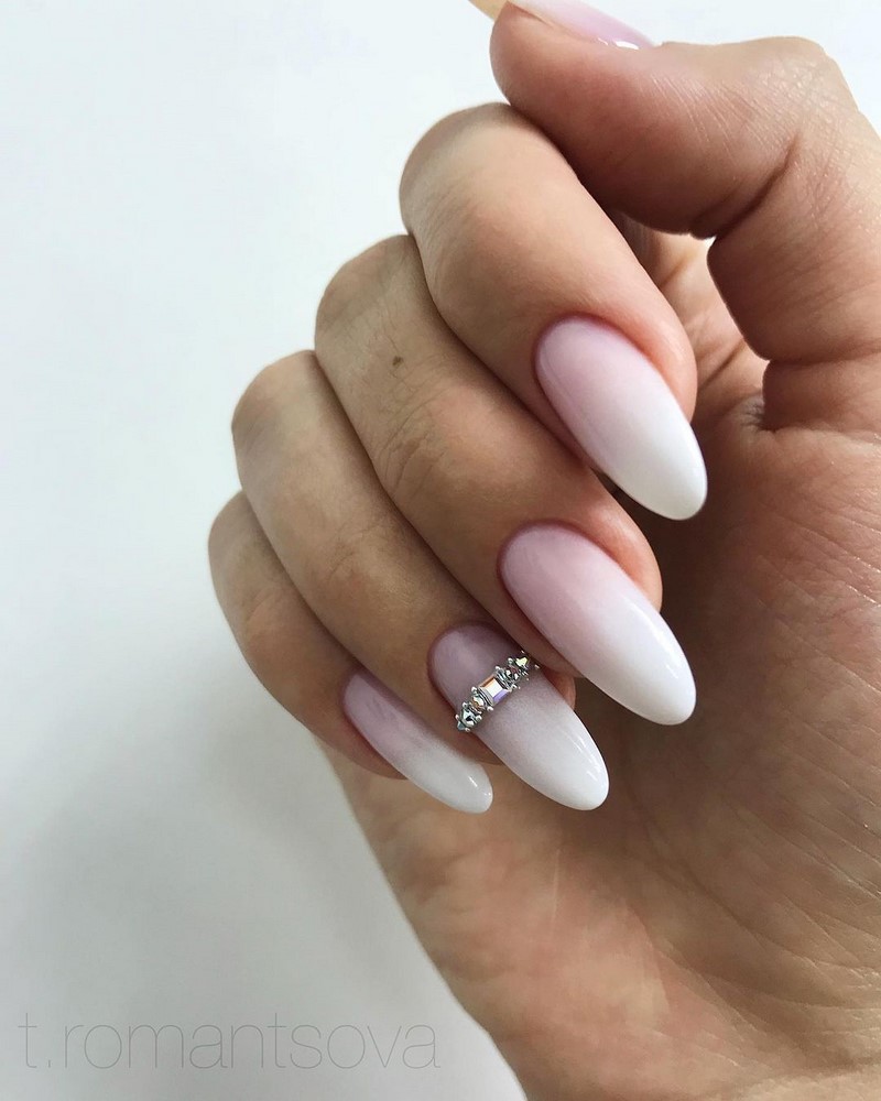 Бело-розовое омбре для свадебного маникюра
